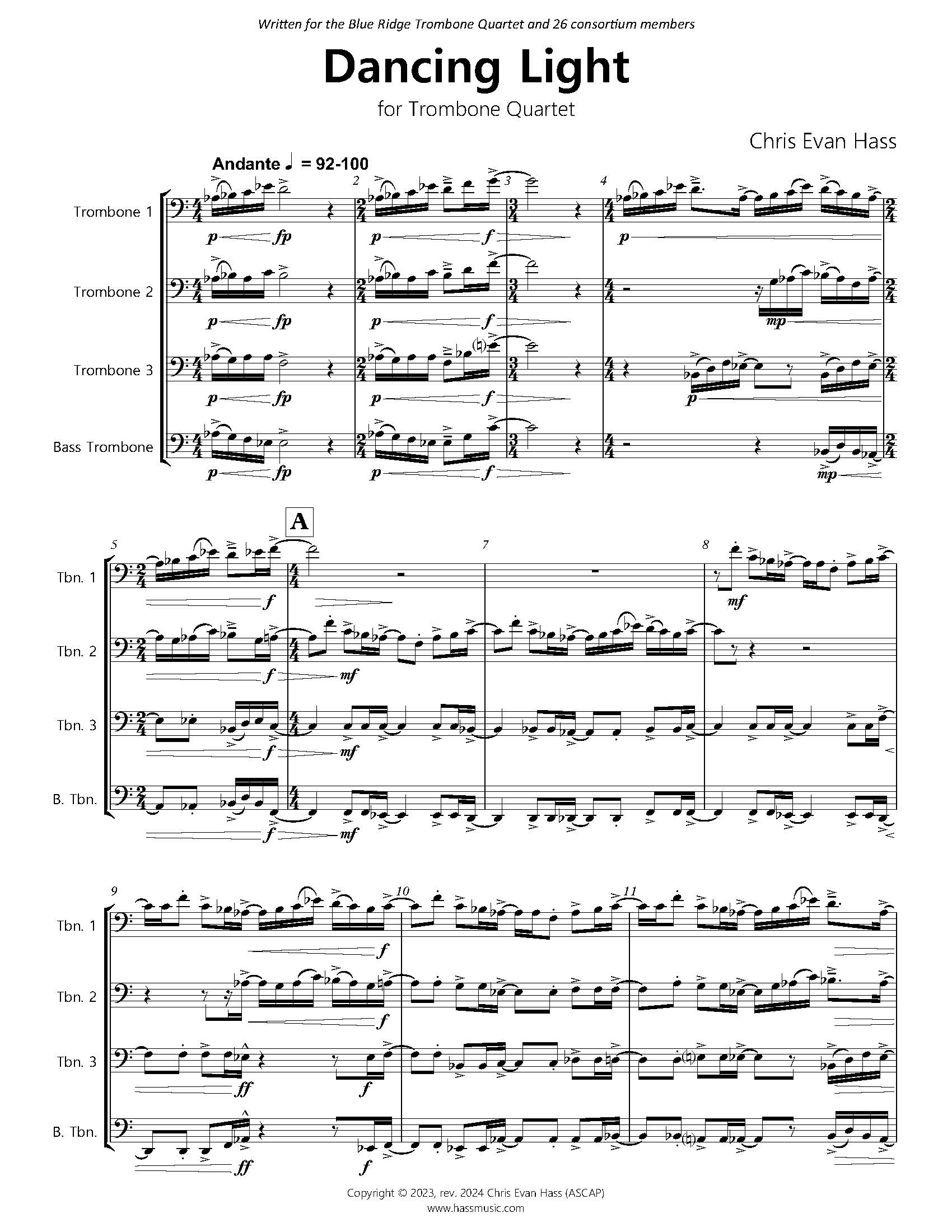 Chris Evan Hass: Dancing Light for Trombone Quartet (PDF)