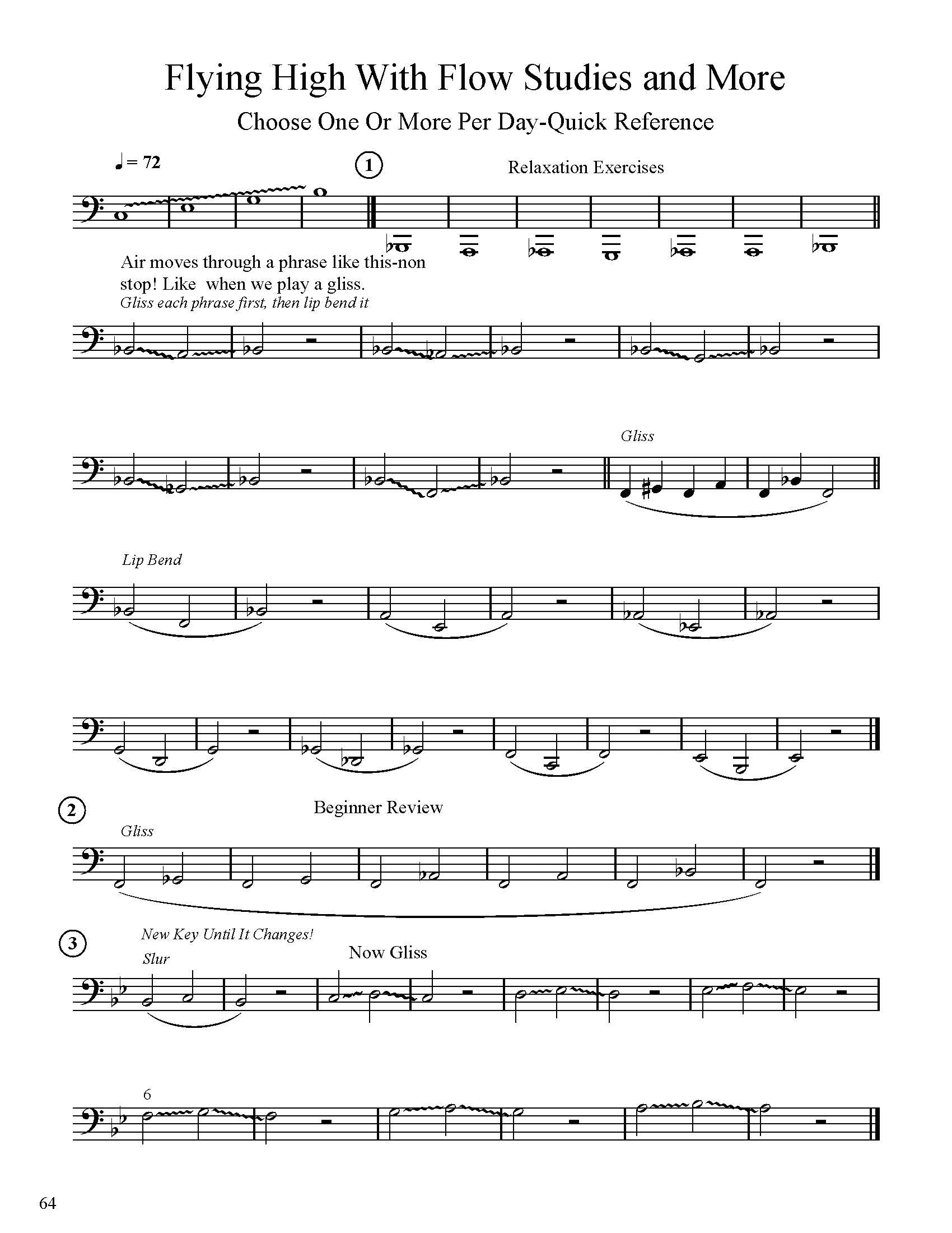An expansion of Flow Studies and More, Linda's first book, with more advanced flow studies for high range, all based on lip slurs or glisses, and lip bending. In addition this book addresses advanced techniques like double tonguing, and things we do in jazz like doodle tonguing and fretted playing (portamentos).