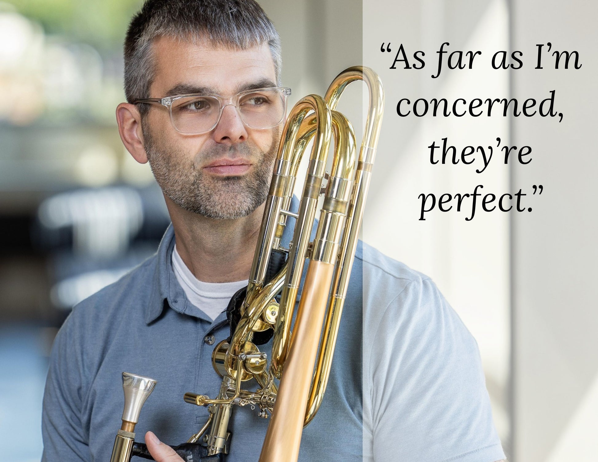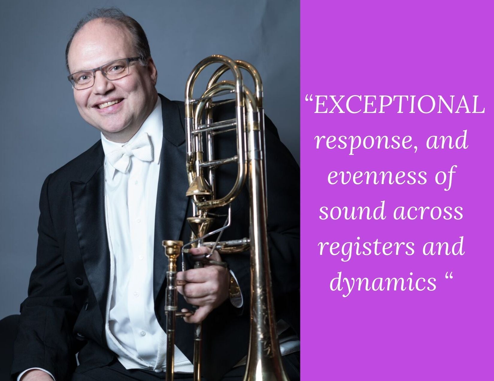 It plays very nicely, once I adjusted the corks to play in tune with the open horn. The resistance is low and even, no matter what register. It’s lightweight, which is not an insignificant factor with bass trombone. The handle makes it very easy to grab and insert into the bell. Having equipment that plays like your mute does makes things much easier on me, and I can concentrate on the music, instead of fighting against my gear. Thanks, Ilan!