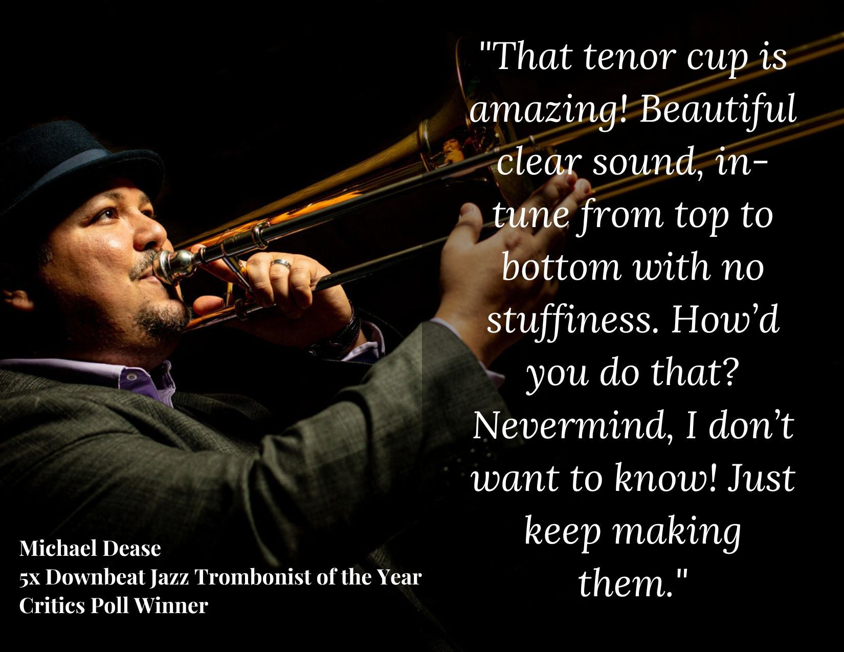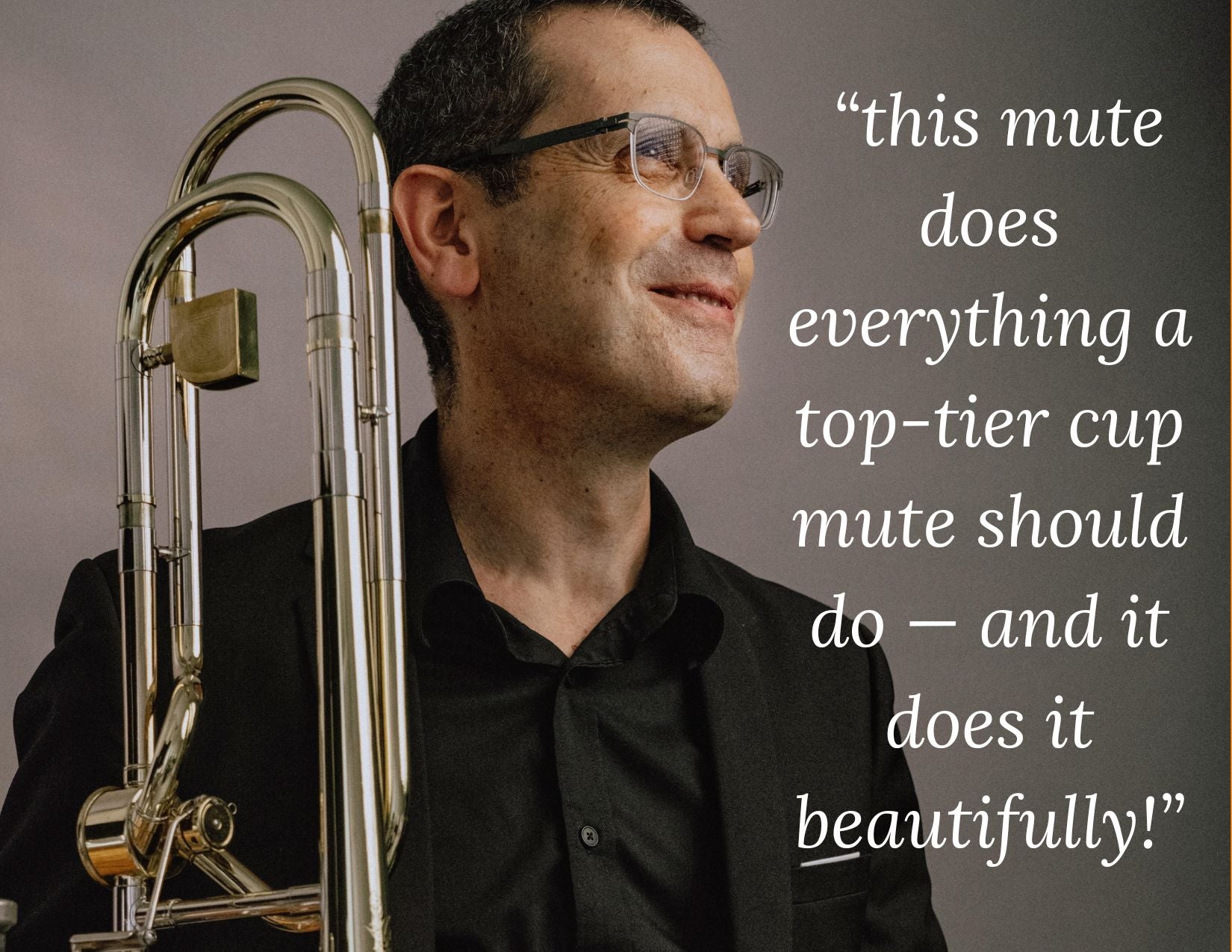 This one took some doing! Three features make this mute special: The semi-soft cup that can be stuffed into any backpack, the neck design that helps give more focused feedback, and the blended cup shape, giving both the traditional sound and modern clarity. Actually, there's a couple more but I'll keep those to myself.
