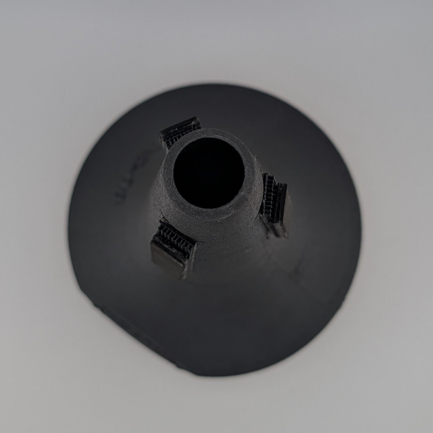 Designated as an A cup, this mute is notn just shallower thank my standard B and C cups, but has different overall dimensions and ratios in the design, balancing a tighter muted sound with a strong core and projection. Available in copper, brass, aluminum, and plastic resonators!