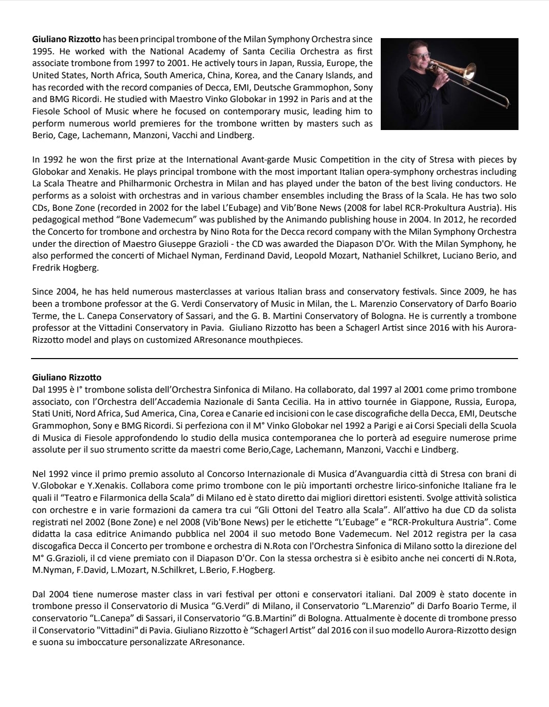 Giuliano Rizzotto, principal trombone of the Milan Symphony Orchestra "Giuseppe Verdi", and Fabrizio Corbino, a distinguished freelance trombonist and arranger, teamed up to create this fascinating resource.